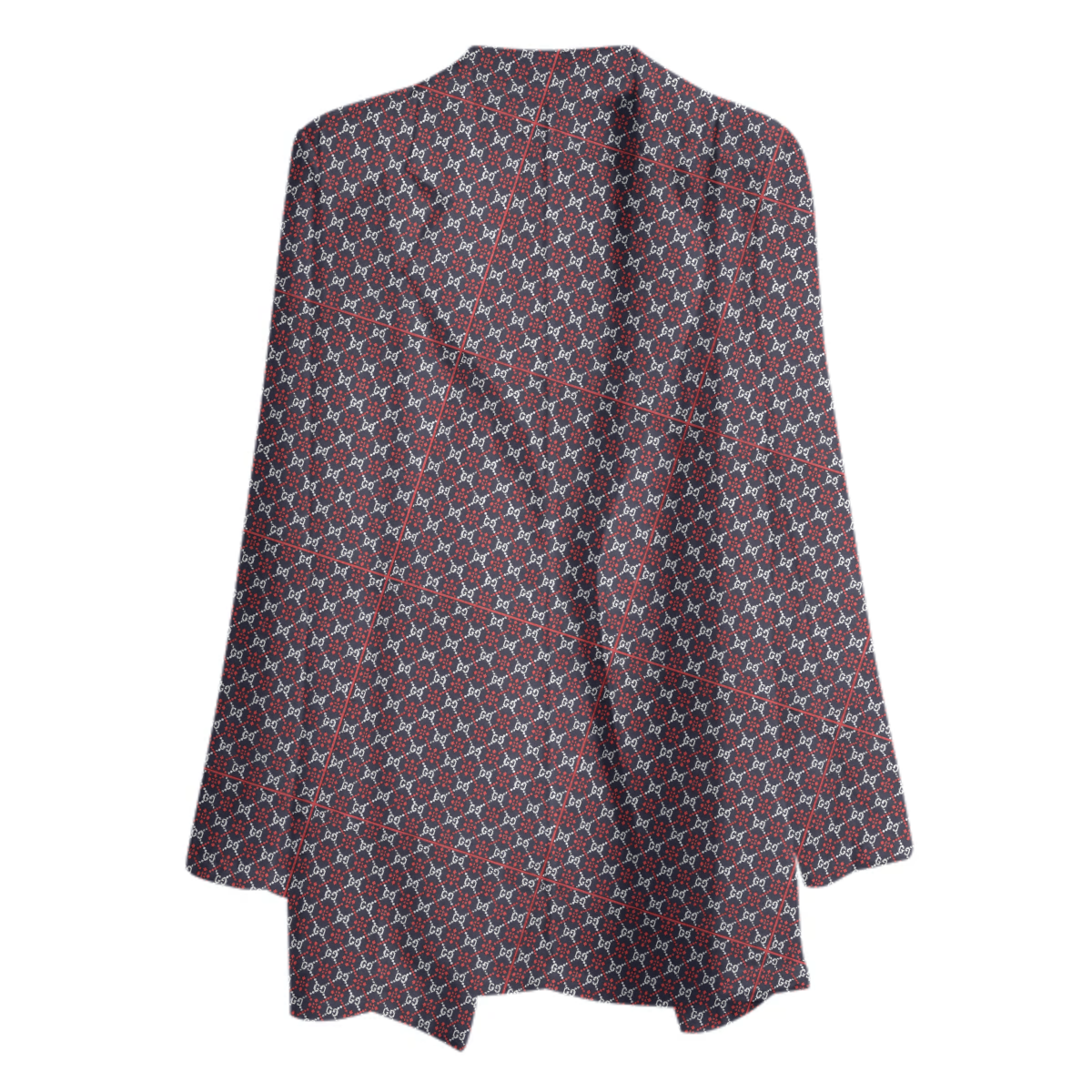 Designed by Gabriel Held this loose fit chiffon blazer features plastic buttons down the front two front flap pockets and a welt left breast pocket. Made with two layers of printed chiffon.