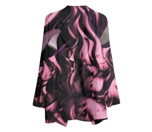 Designed by Gabriel Held this loose fit chiffon blazer features plastic buttons down the front two front flap pockets and a welt left breast pocket. Made with two layers of printed chiffon.