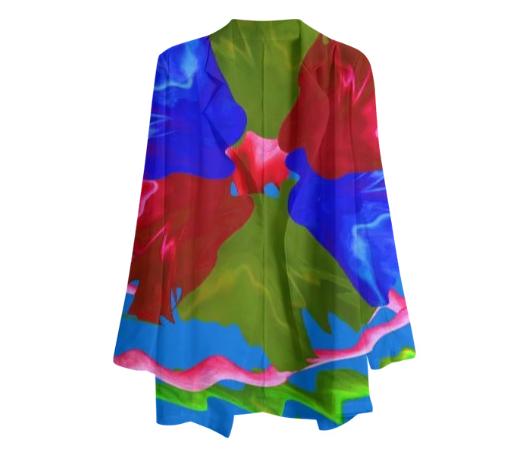 Designed by Gabriel Held this loose fit chiffon blazer features plastic buttons down the front two front flap pockets and a welt left breast pocket. Made with two layers of printed chiffon.