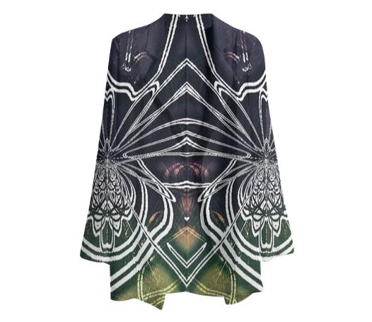 Designed by Gabriel Held this loose fit chiffon blazer features plastic buttons down the front two front flap pockets and a welt left breast pocket. Made with two layers of printed chiffon.