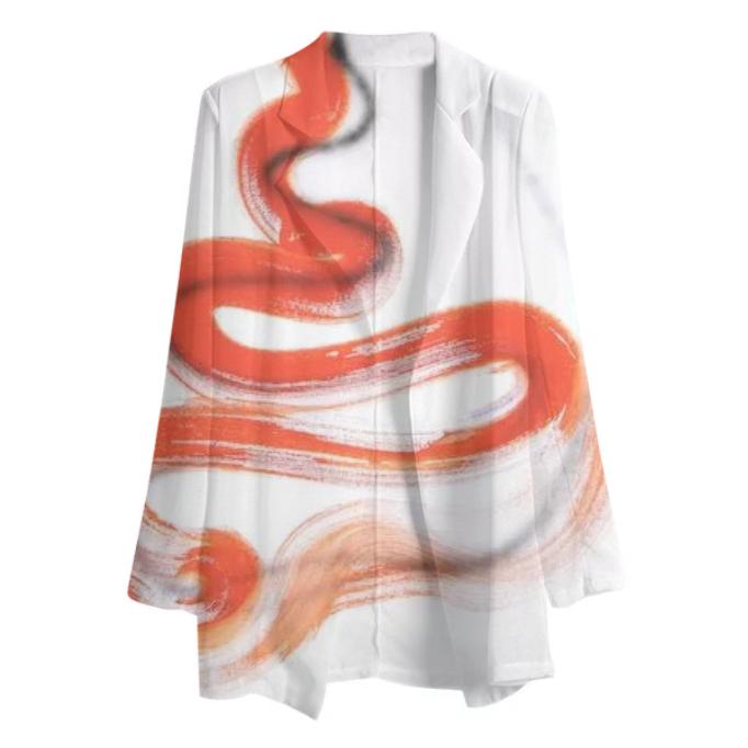 Designed by Gabriel Held this loose fit chiffon blazer features plastic buttons down the front two front flap pockets and a welt left breast pocket. Made with two layers of printed chiffon.