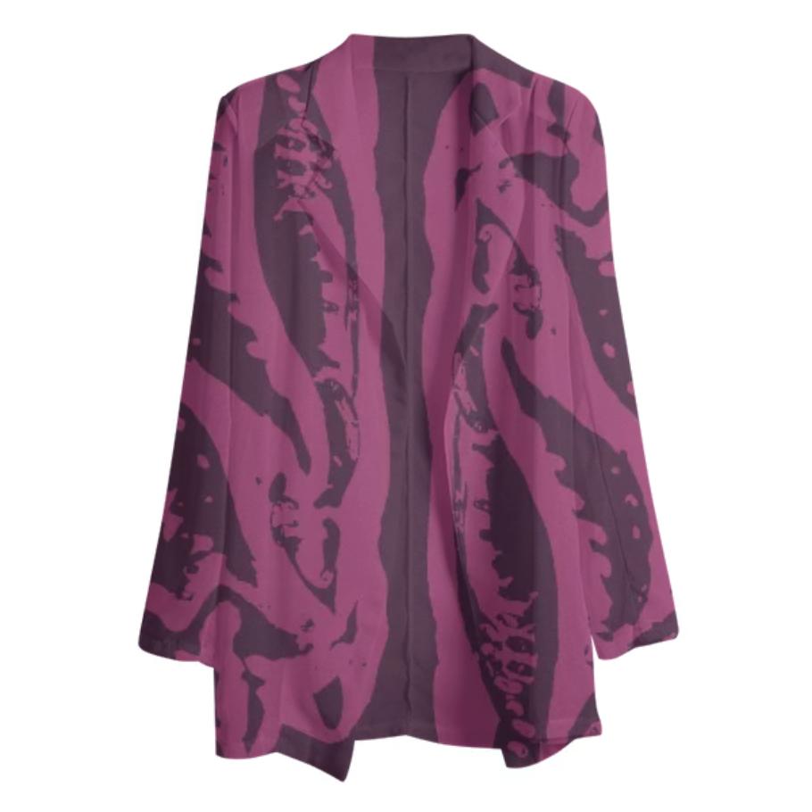Designed by Gabriel Held this loose fit chiffon blazer features plastic buttons down the front two front flap pockets and a welt left breast pocket. Made with two layers of printed chiffon.