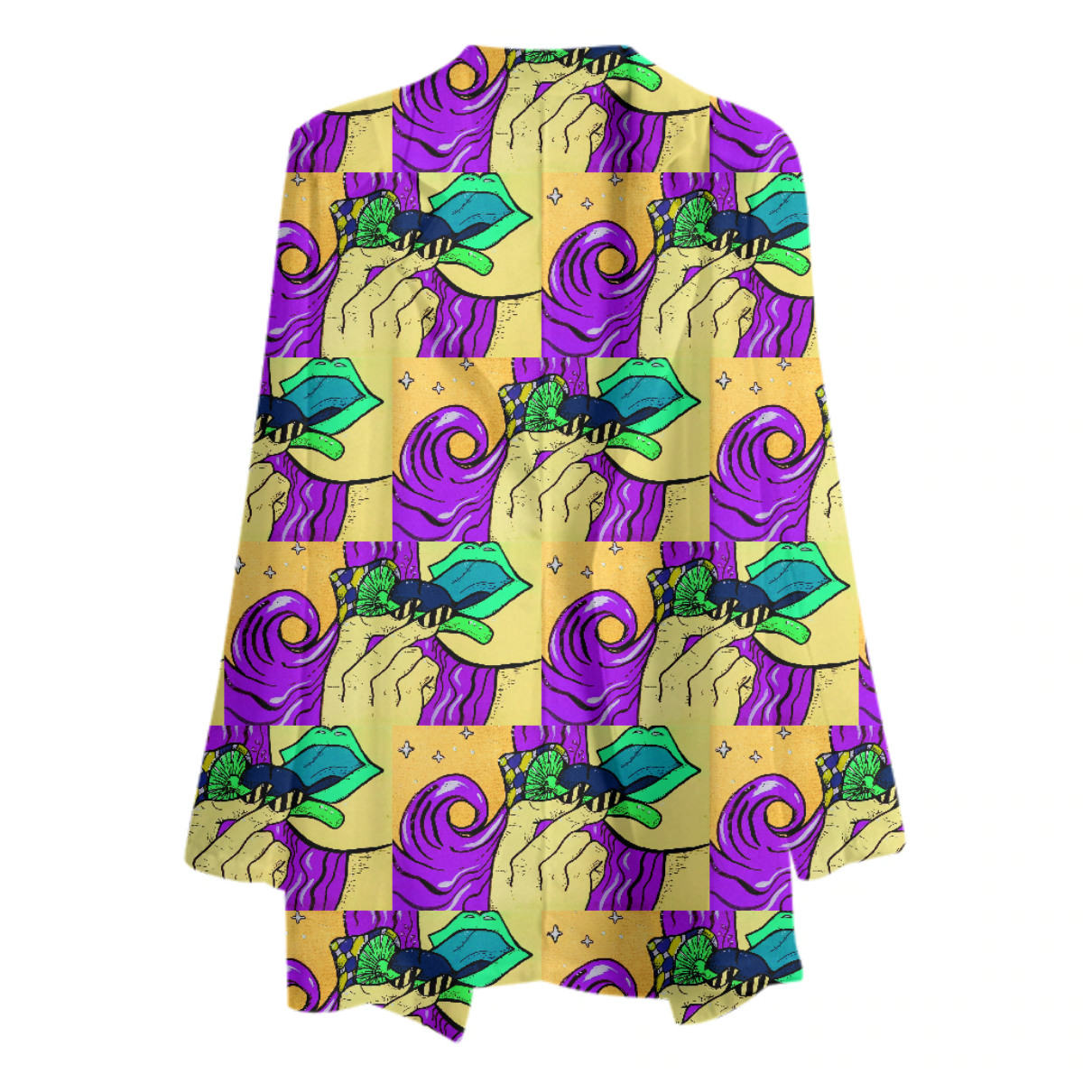 Designed by Gabriel Held this loose fit chiffon blazer features plastic buttons down the front two front flap pockets and a welt left breast pocket. Made with two layers of printed chiffon.