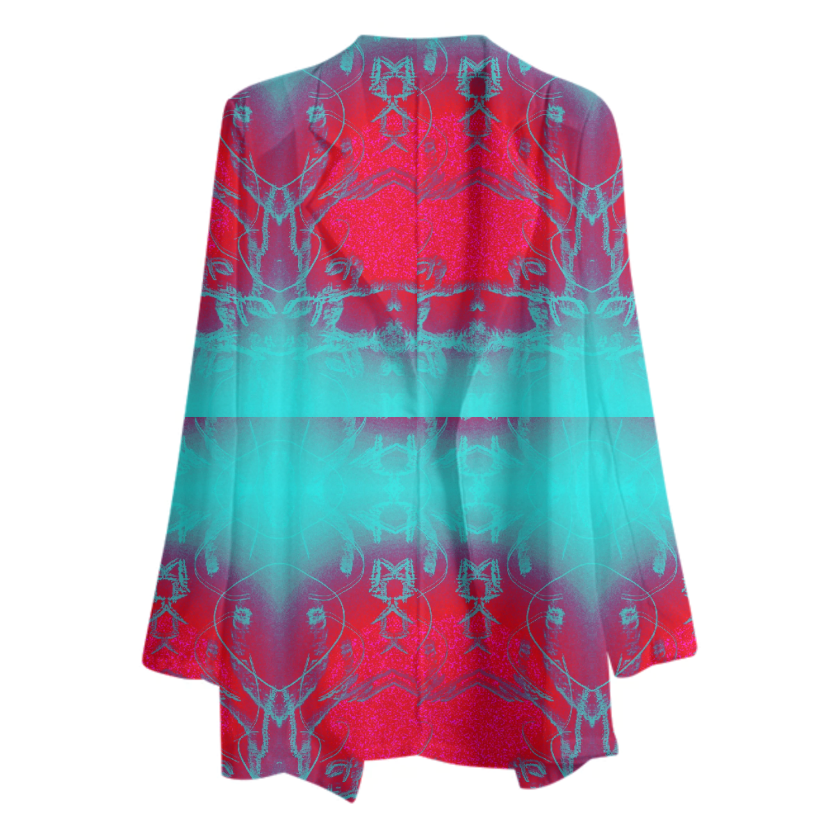 Designed by Gabriel Held this loose fit chiffon blazer features plastic buttons down the front two front flap pockets and a welt left breast pocket. Made with two layers of printed chiffon.