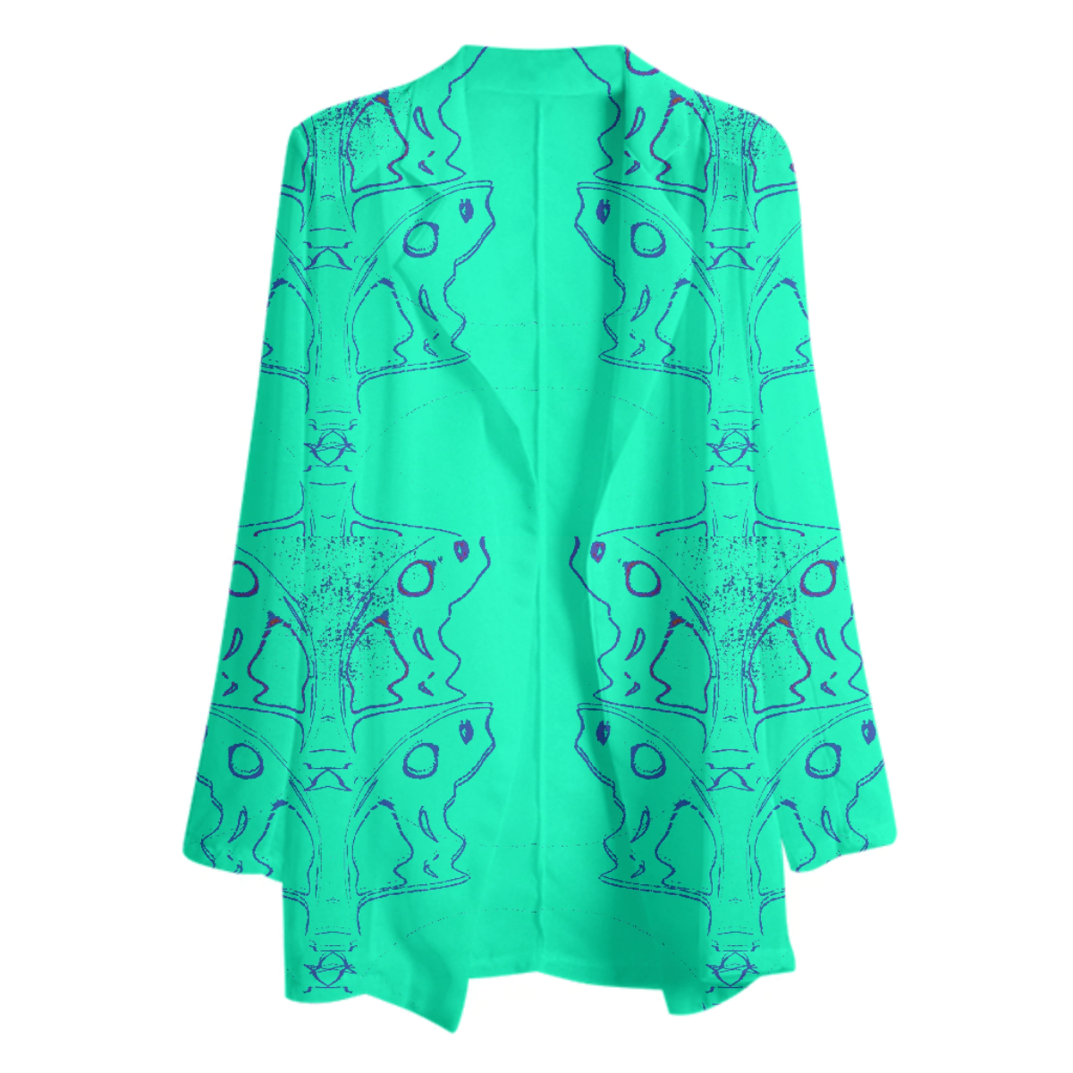 Designed by Gabriel Held this loose fit chiffon blazer features plastic buttons down the front two front flap pockets and a welt left breast pocket. Made with two layers of printed chiffon.