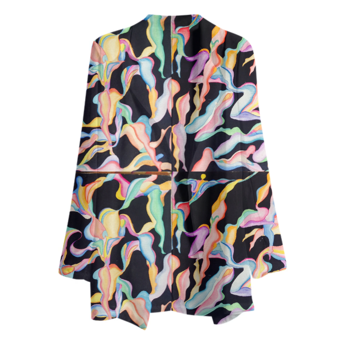 The uploaded file will be printed on the entire front and be mirrored on the back. Because of our cut and sew process some print elements on pockets seams and sleeves might not match up. For best results please upload a PNG or JPG with RGB color profile and dimensions of at least 35 inches width by 30 inches length. DPI can be as low as 72.
