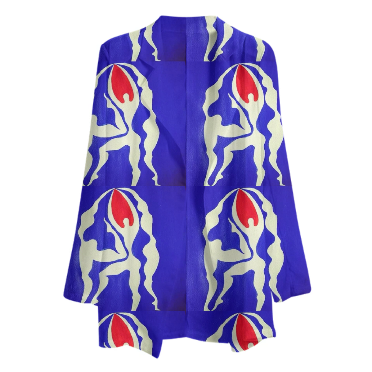 Designed by Gabriel Held this loose fit chiffon blazer features plastic buttons down the front two front flap pockets and a welt left breast pocket. Made with two layers of printed chiffon.