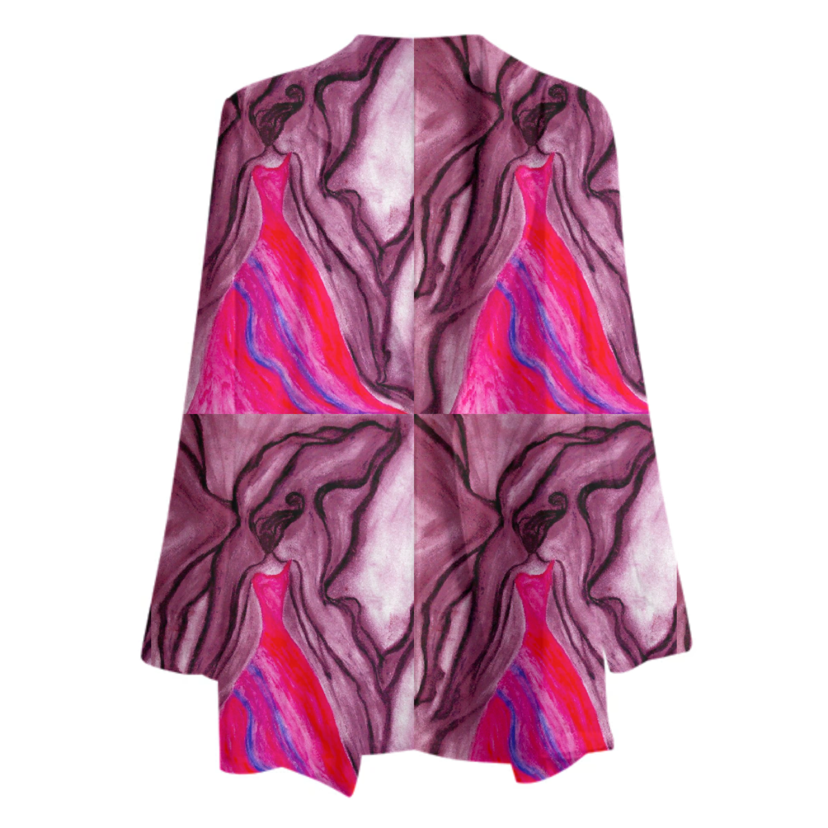 Designed by Gabriel Held this loose fit chiffon blazer features plastic buttons down the front two front flap pockets and a welt left breast pocket. Made with two layers of printed chiffon.