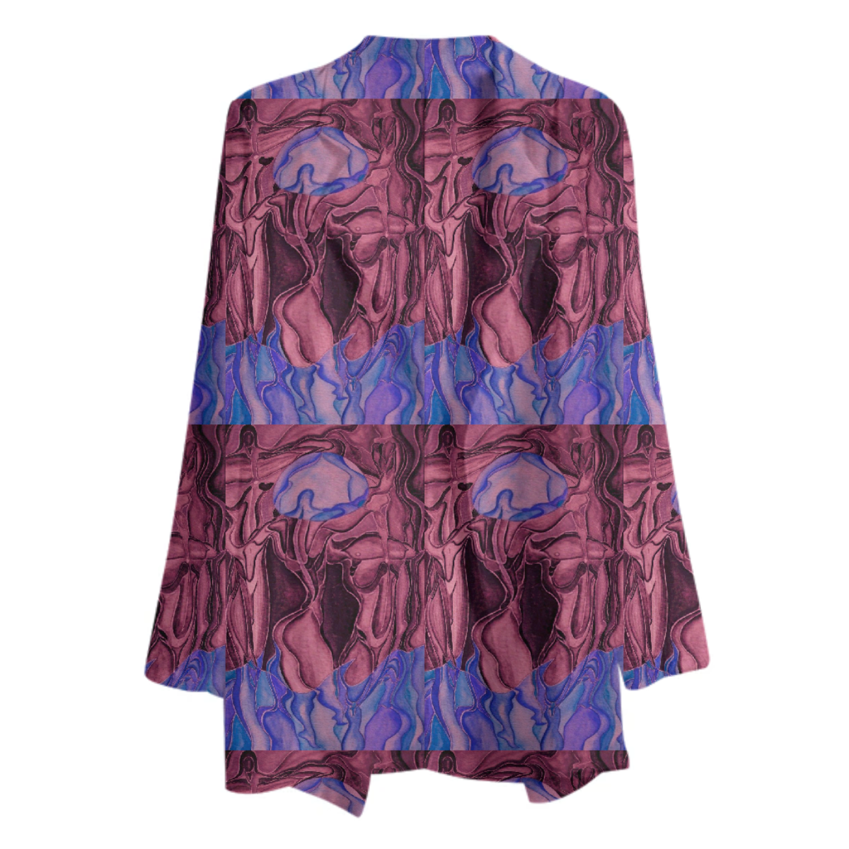Designed by Gabriel Held this loose fit chiffon blazer features plastic buttons down the front two front flap pockets and a welt left breast pocket. Made with two layers of printed chiffon.