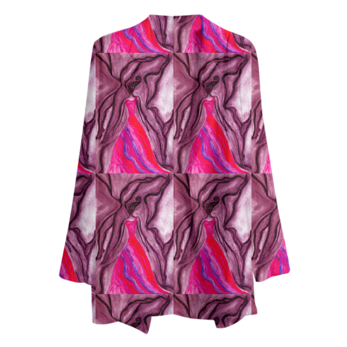 The uploaded file will be printed on the entire front and be mirrored on the back. Because of our cut and sew process some print elements on pockets seams and sleeves might not match up. For best results please upload a PNG or JPG with RGB color profile and dimensions of at least 35 inches width by 30 inches length. DPI can be as low as 72.