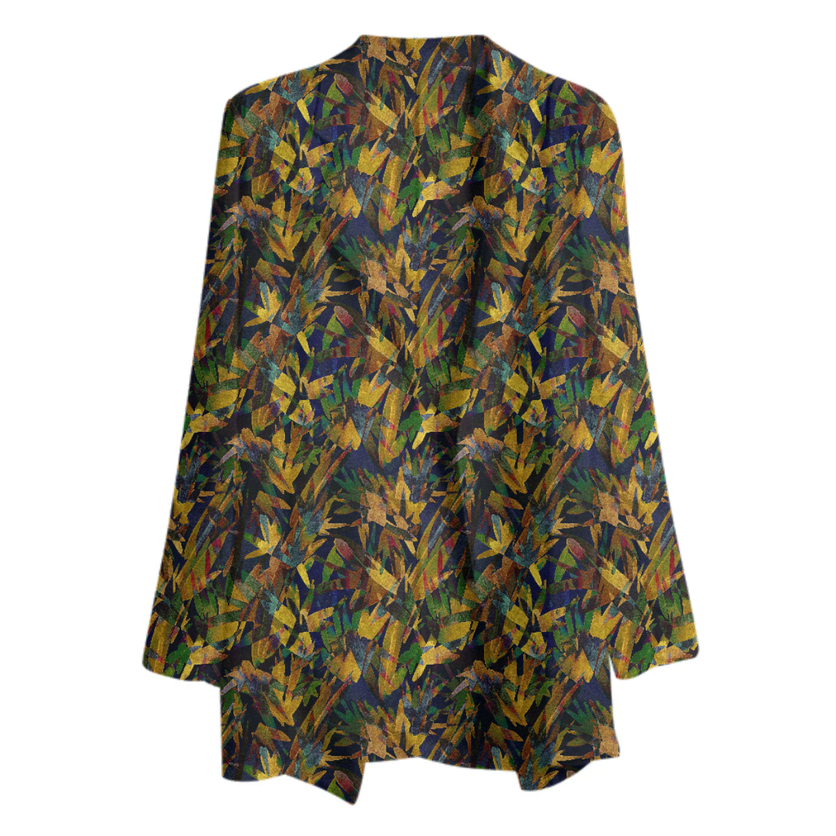 Designed by Gabriel Held this loose fit chiffon blazer features plastic buttons down the front two front flap pockets and a welt left breast pocket. Made with two layers of printed chiffon.