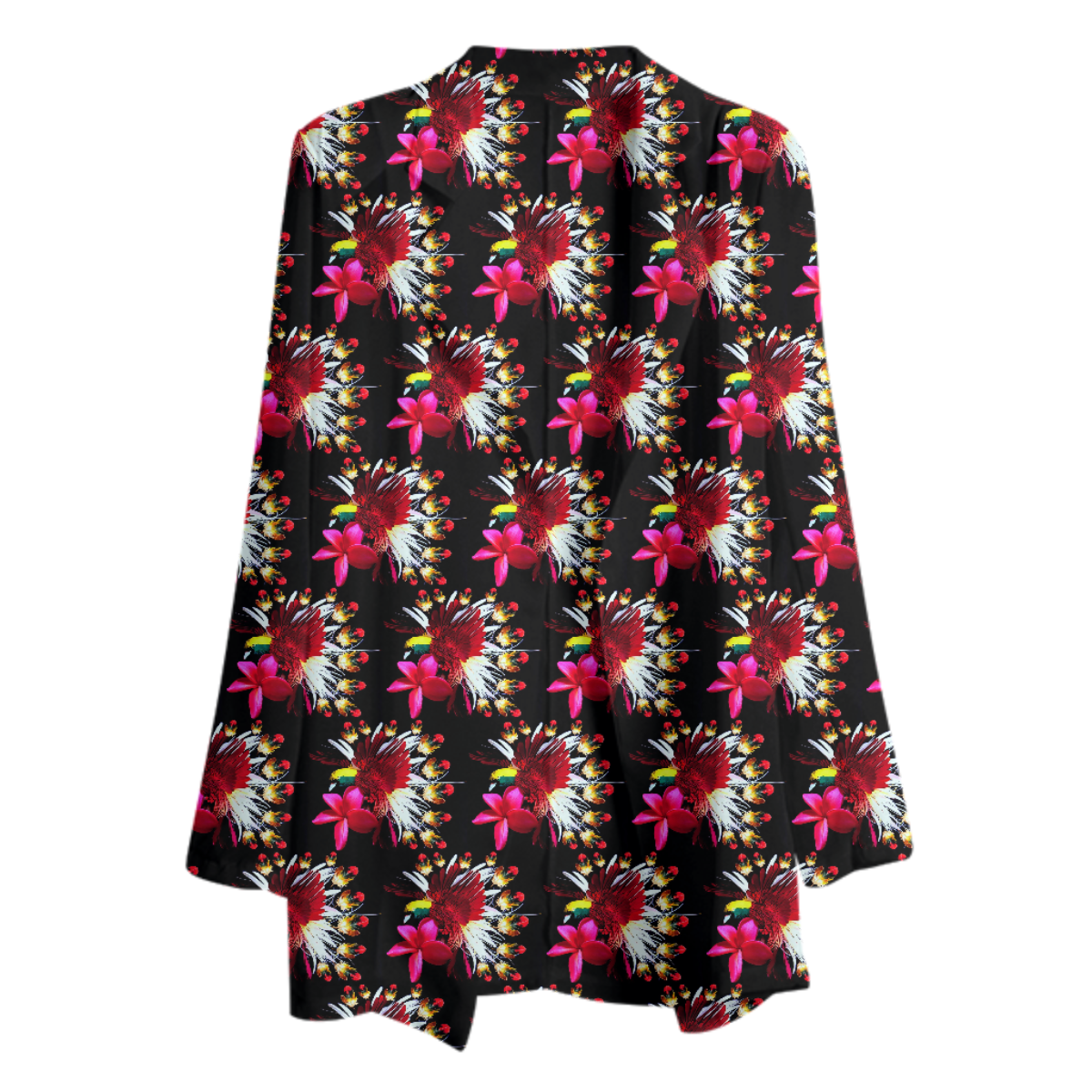 Designed by Gabriel Held this loose fit chiffon blazer features plastic buttons down the front two front flap pockets and a welt left breast pocket. Made with two layers of printed chiffon.