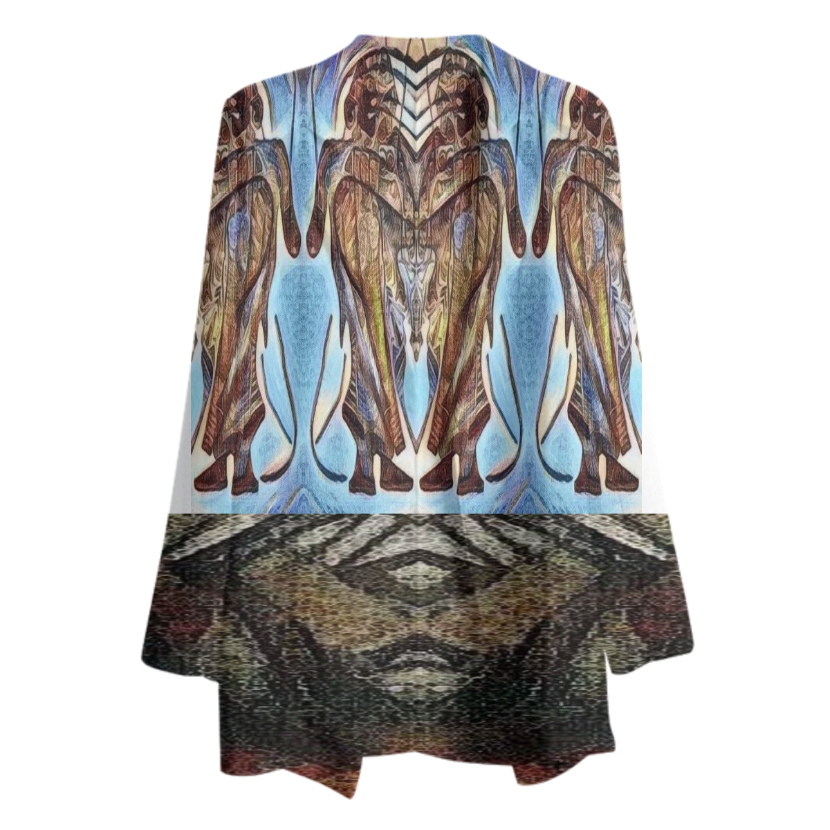 Designed by Gabriel Held this loose fit chiffon blazer features plastic buttons down the front two front flap pockets and a welt left breast pocket. Made with two layers of printed chiffon.