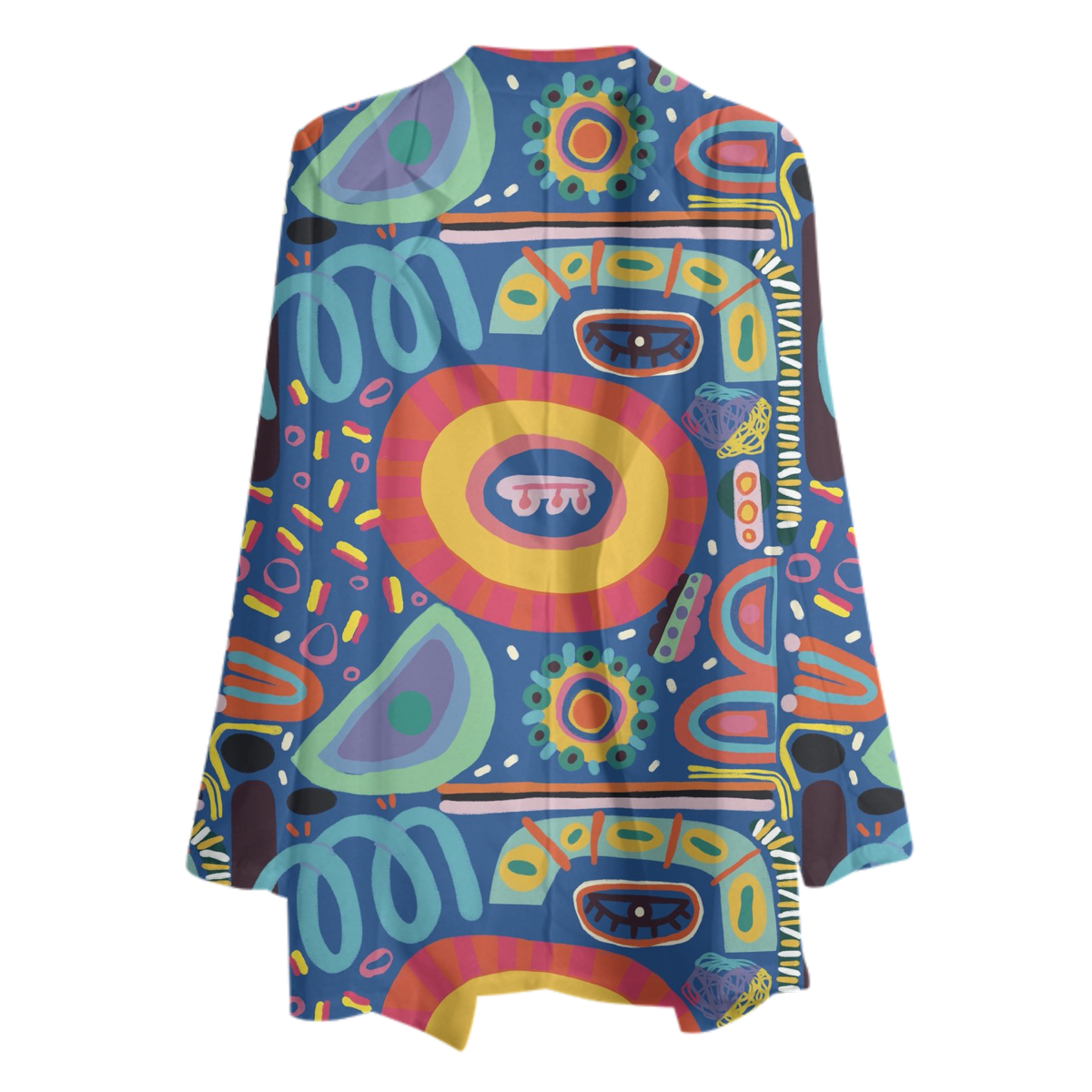 Designed by Gabriel Held this loose fit chiffon blazer features plastic buttons down the front two front flap pockets and a welt left breast pocket. Made with two layers of printed chiffon.