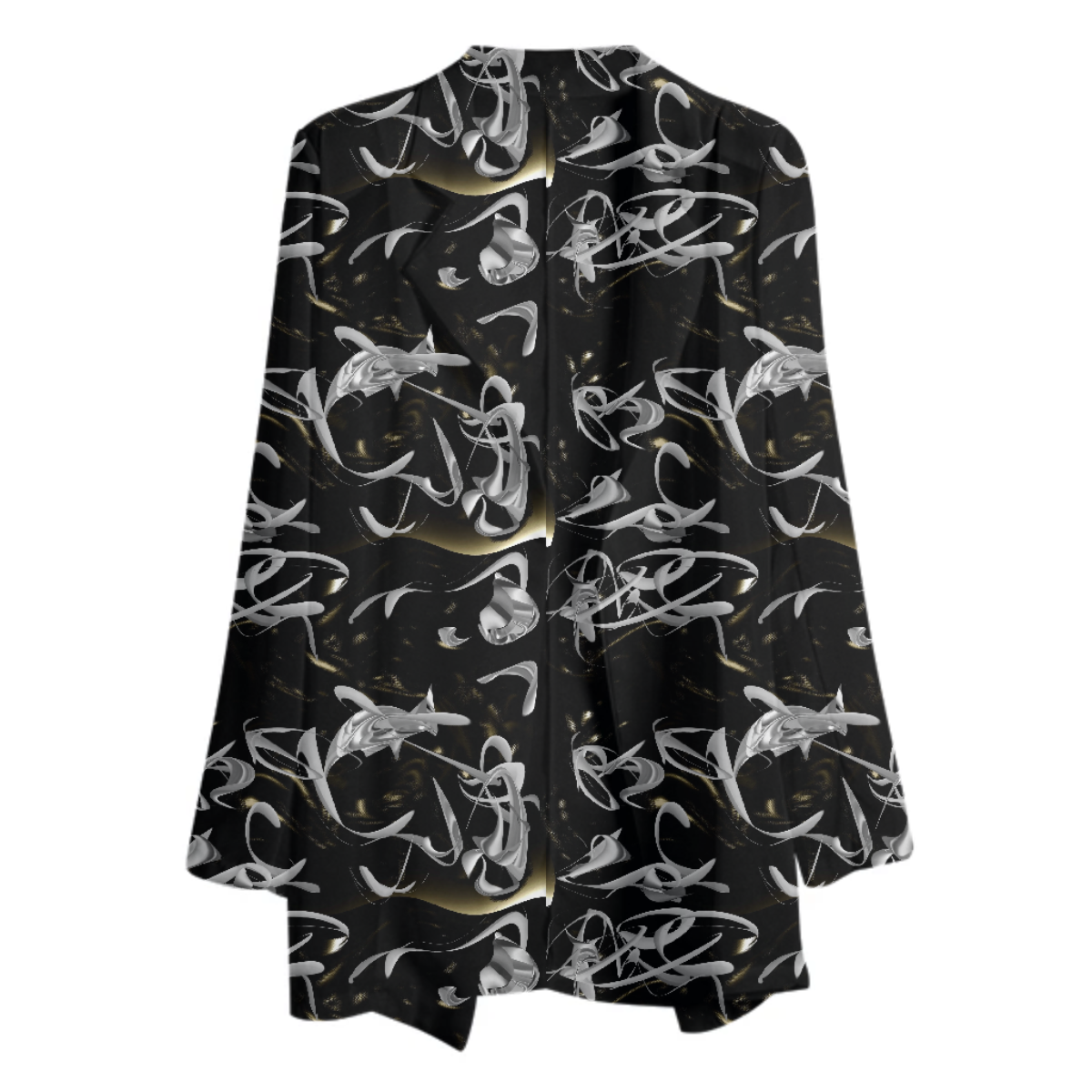 Designed by Gabriel Held this loose fit chiffon blazer features plastic buttons down the front two front flap pockets and a welt left breast pocket. Made with two layers of printed chiffon.