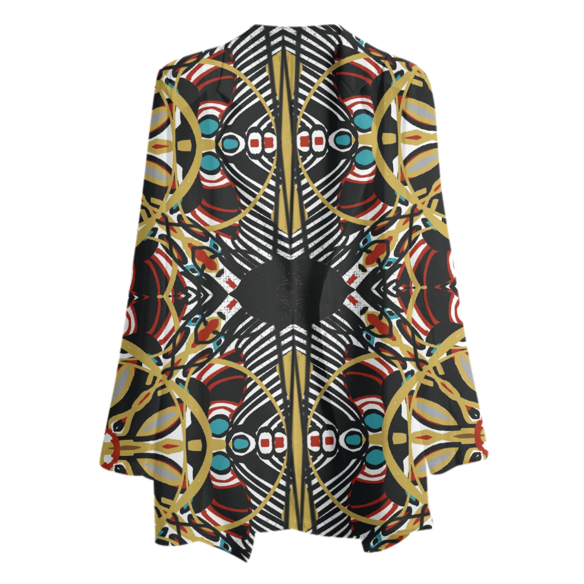 Designed by Gabriel Held this loose fit chiffon blazer features plastic buttons down the front two front flap pockets and a welt left breast pocket. Made with two layers of printed chiffon.