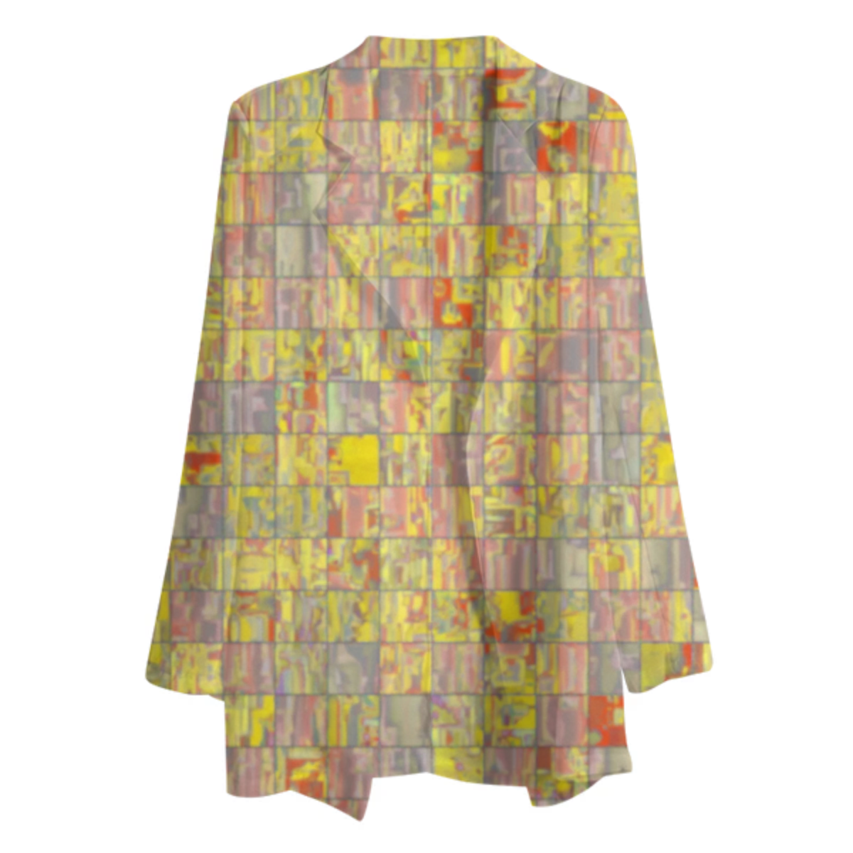 Designed by Gabriel Held this loose fit chiffon blazer features plastic buttons down the front two front flap pockets and a welt left breast pocket. Made with two layers of printed chiffon.