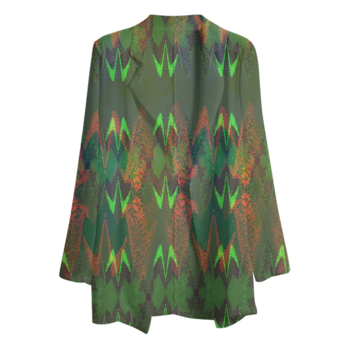 Designed by Gabriel Held this loose fit chiffon blazer features plastic buttons down the front two front flap pockets and a welt left breast pocket. Made with two layers of printed chiffon.