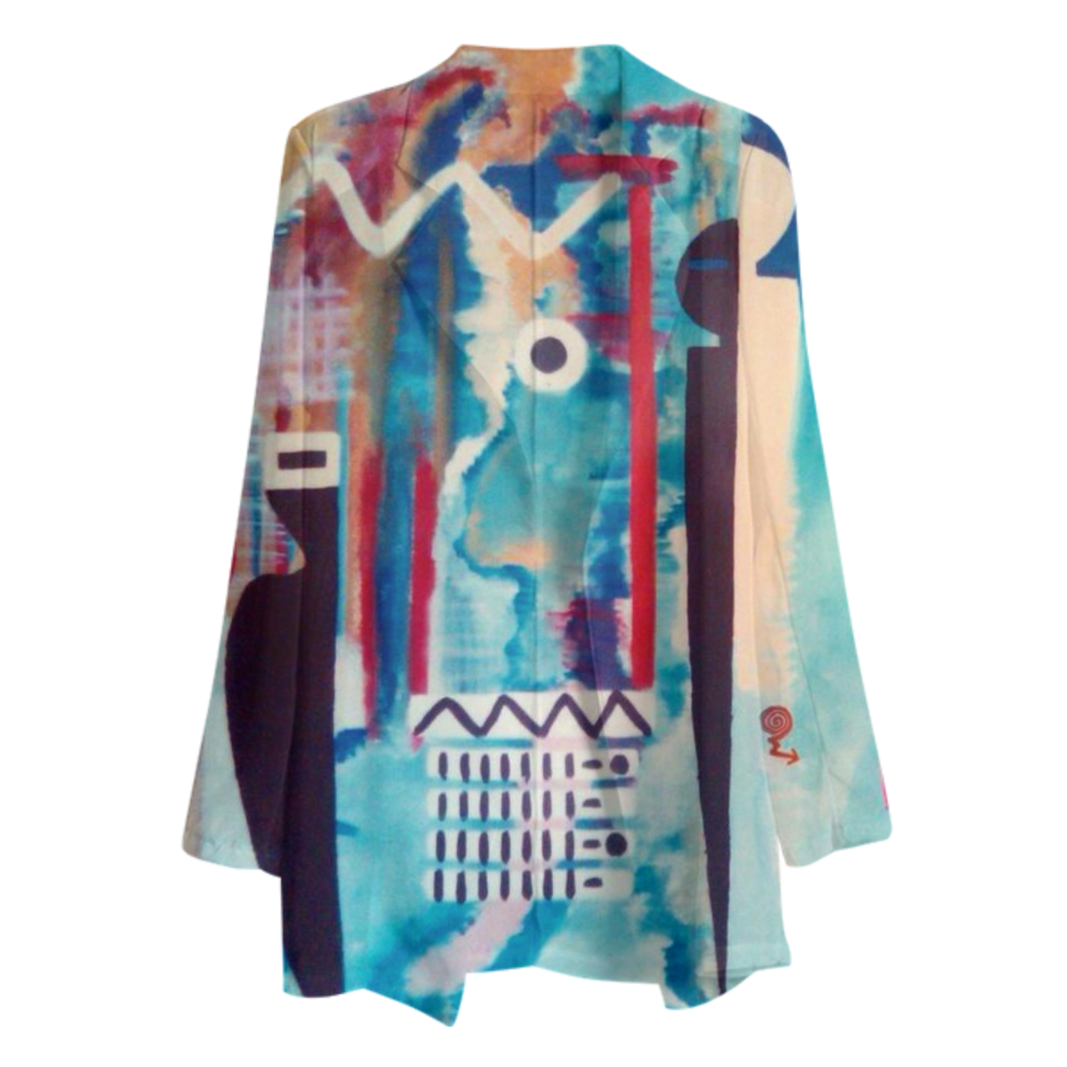 Designed by Gabriel Held this loose fit chiffon blazer features plastic buttons down the front two front flap pockets and a welt left breast pocket. Made with two layers of printed chiffon.