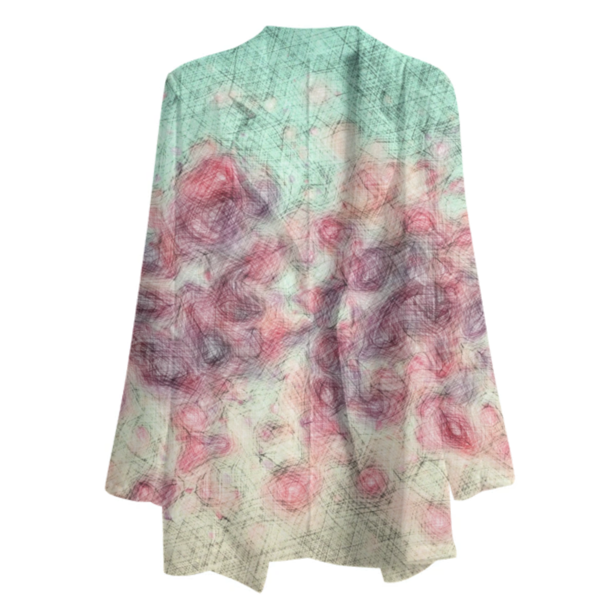 Designed by Gabriel Held this loose fit chiffon blazer features plastic buttons down the front two front flap pockets and a welt left breast pocket. Made with two layers of printed chiffon.