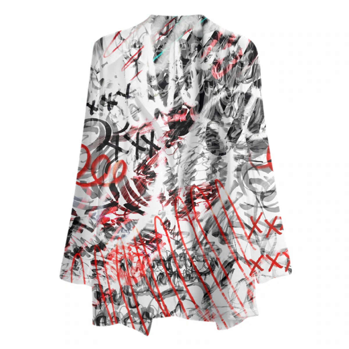 Designed by Gabriel Held this loose fit chiffon blazer features plastic buttons down the front two front flap pockets and a welt left breast pocket. Made with two layers of printed chiffon.