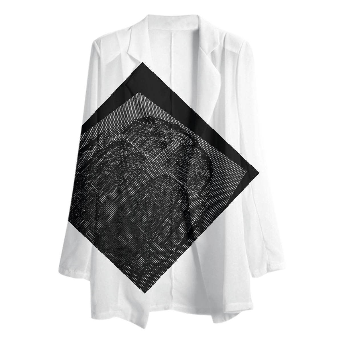 The uploaded file will be printed on the entire front and be mirrored on the back. Because of our cut and sew process some print elements on pockets seams and sleeves might not match up. For best results please upload a PNG or JPG with RGB color profile and dimensions of at least 35 inches width by 30 inches length. DPI can be as low as 72.