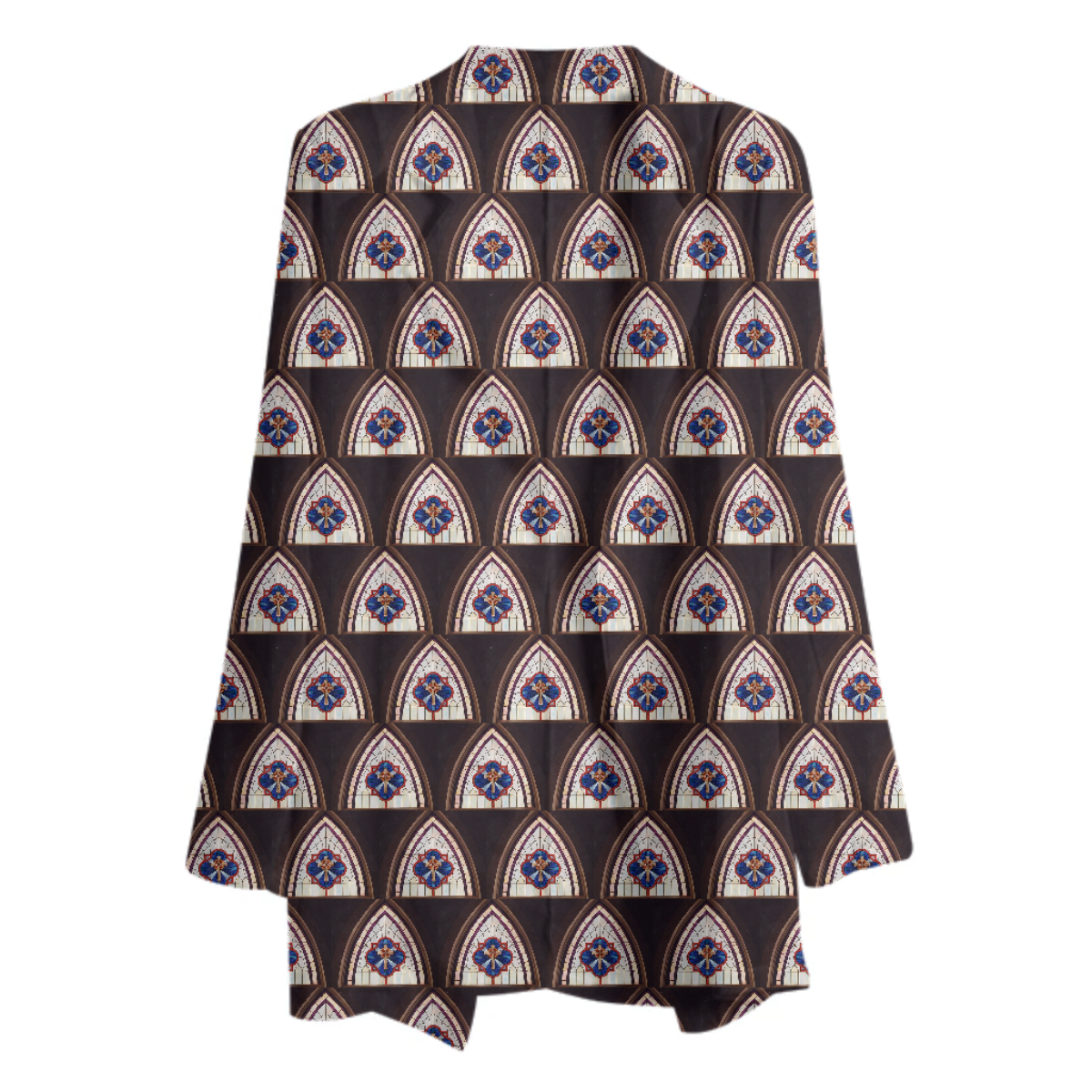 Designed by Gabriel Held this loose fit chiffon blazer features plastic buttons down the front two front flap pockets and a welt left breast pocket. Made with two layers of printed chiffon.