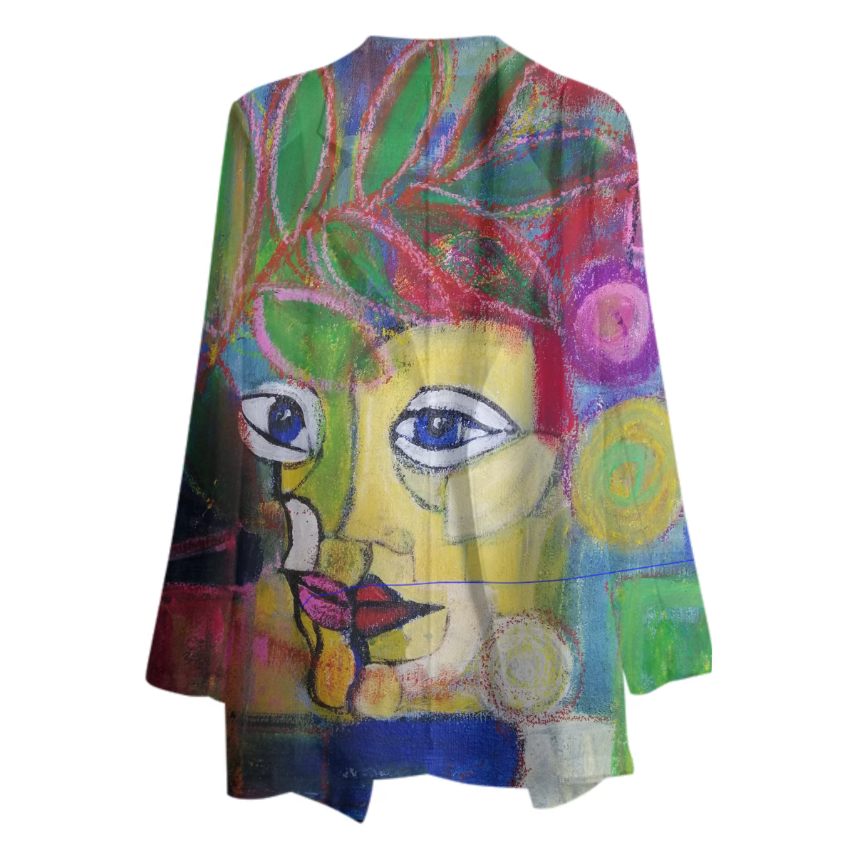 The uploaded file will be printed on the entire front and be mirrored on the back. Because of our cut and sew process some print elements on pockets seams and sleeves might not match up. For best results please upload a PNG or JPG with RGB color profile and dimensions of at least 35 inches width by 30 inches length. DPI can be as low as 72.