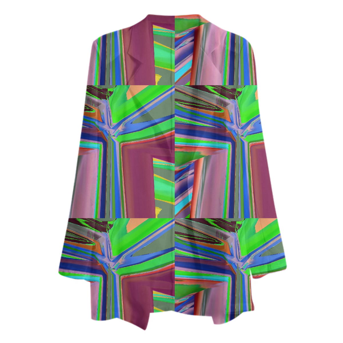 Designed by Gabriel Held this loose fit chiffon blazer features plastic buttons down the front two front flap pockets and a welt left breast pocket. Made with two layers of printed chiffon.