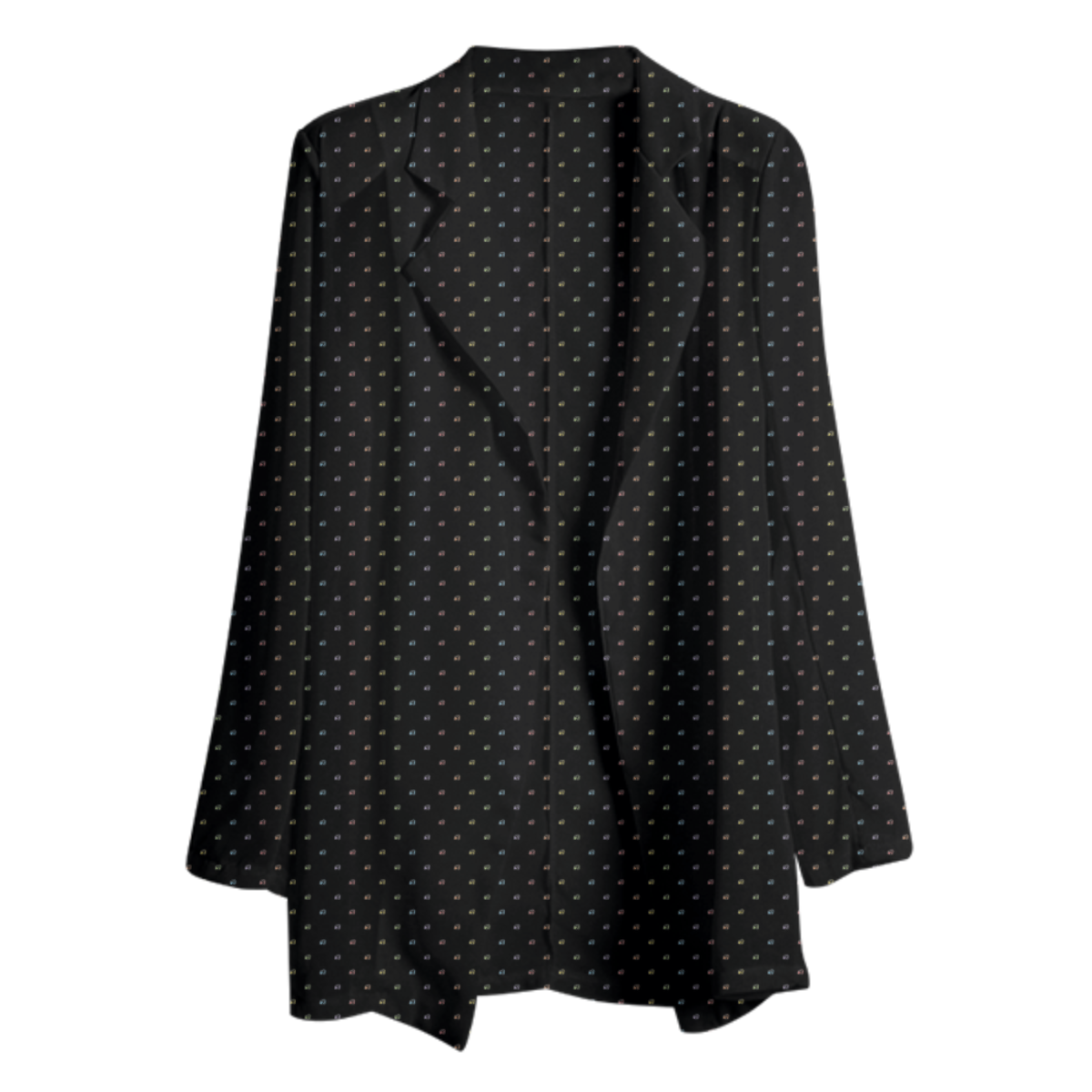 Designed by Gabriel Held this loose fit chiffon blazer features plastic buttons down the front two front flap pockets and a welt left breast pocket. Made with two layers of printed chiffon.