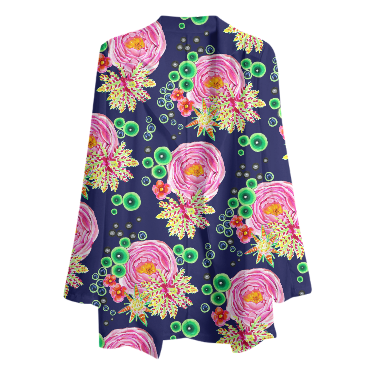 Designed by Gabriel Held this loose fit chiffon blazer features plastic buttons down the front two front flap pockets and a welt left breast pocket. Made with two layers of printed chiffon.