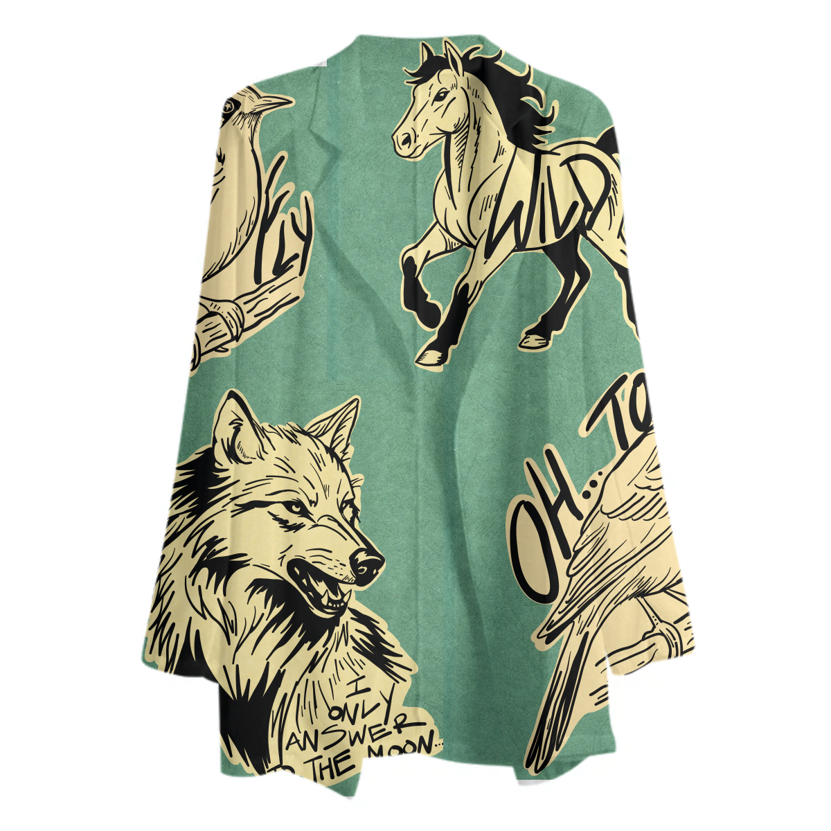 Designed by Gabriel Held this loose fit chiffon blazer features plastic buttons down the front two front flap pockets and a welt left breast pocket. Made with two layers of printed chiffon.