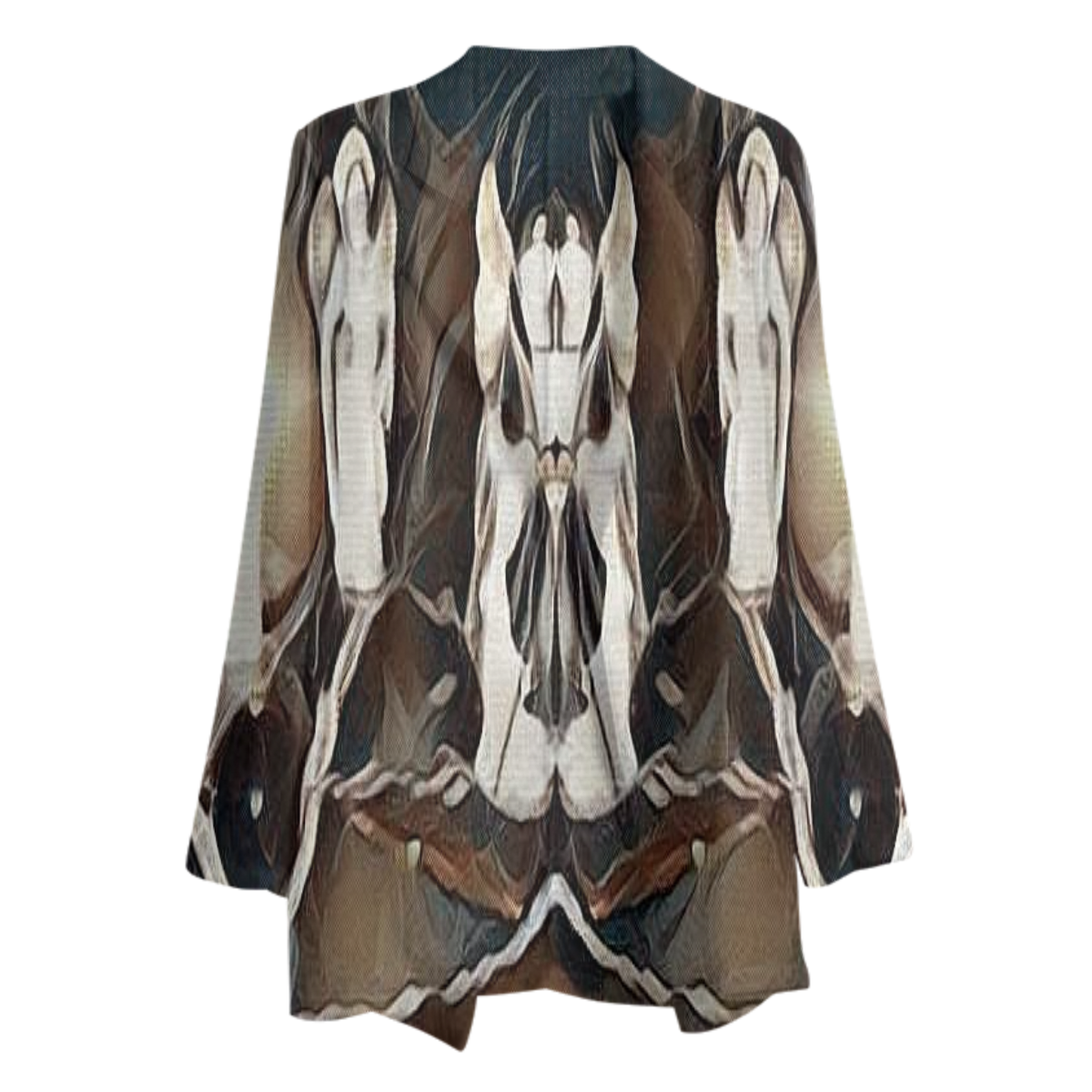 Designed by Gabriel Held this loose fit chiffon blazer features plastic buttons down the front two front flap pockets and a welt left breast pocket. Made with two layers of printed chiffon.