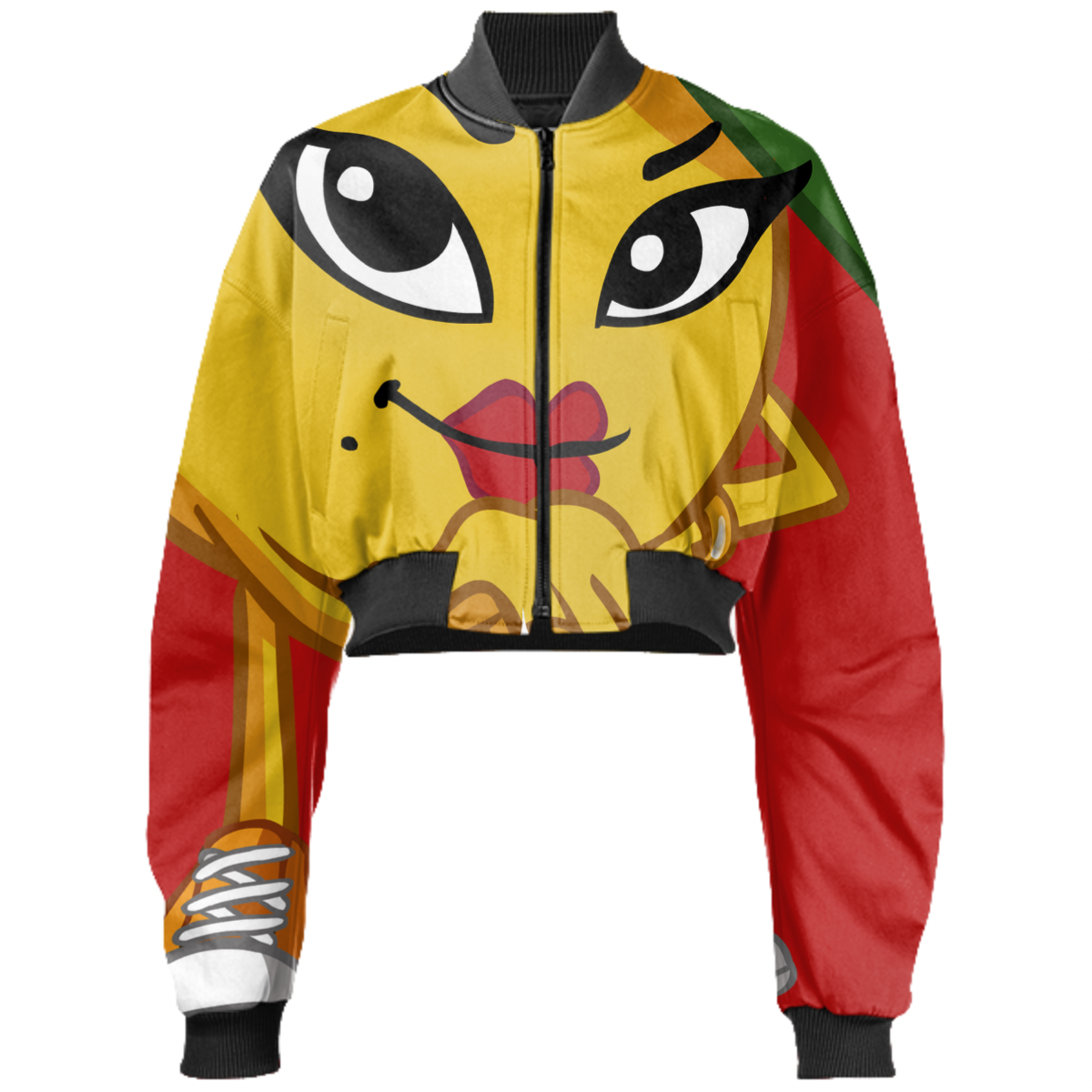 Designed by Gabriel Held this neoprene bomber jacket has a cropped fit with raglan sleeves a zip up front and two welt pockets. Matches with the Gabriel Held Mini Zip Skirt.