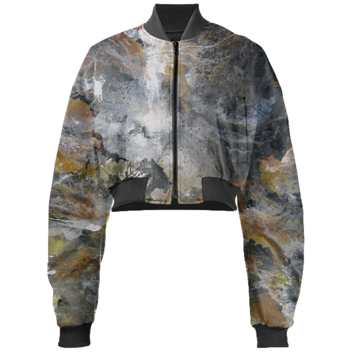 Designed by Gabriel Held this neoprene bomber jacket has a cropped fit with raglan sleeves a zip up front and two welt pockets. Matches with the Gabriel Held Mini Zip Skirt.