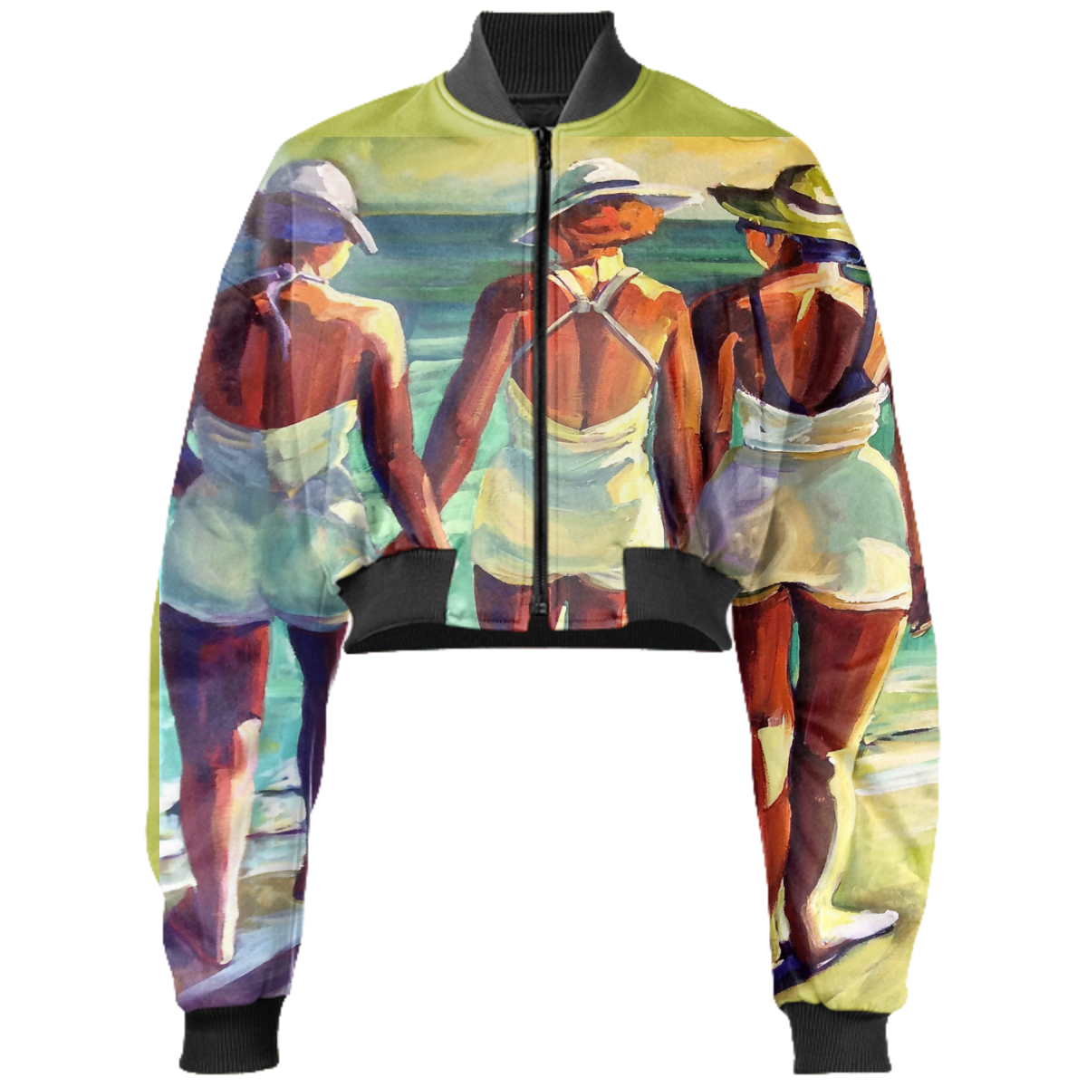 Designed by Gabriel Held this neoprene bomber jacket has a cropped fit with raglan sleeves a zip up front and two welt pockets. Matches with the Gabriel Held Mini Zip Skirt.