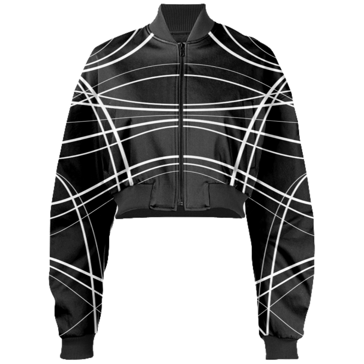 Designed by Gabriel Held this neoprene bomber jacket has a cropped fit with raglan sleeves a zip up front and two welt pockets. Matches with the Gabriel Held Mini Zip Skirt.