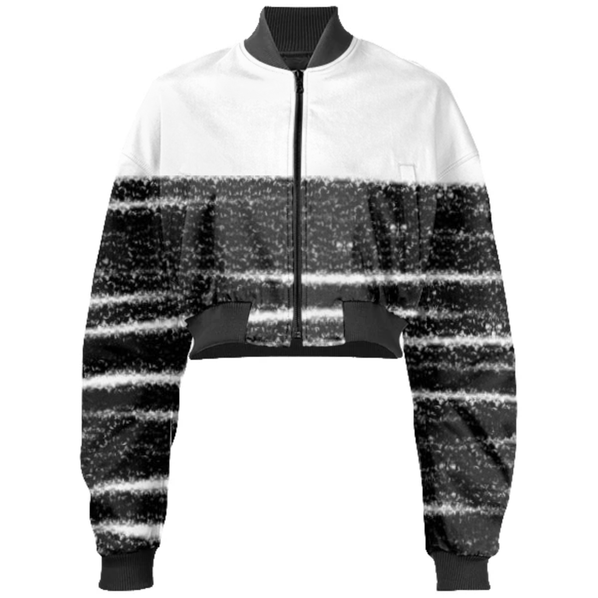 Designed by Gabriel Held this neoprene bomber jacket has a cropped fit with raglan sleeves a zip up front and two welt pockets. Matches with the Gabriel Held Mini Zip Skirt.