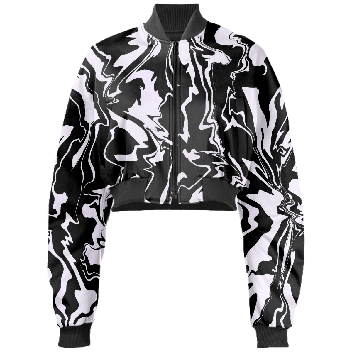 Designed by Gabriel Held this neoprene bomber jacket has a cropped fit with raglan sleeves a zip up front and two welt pockets. Matches with the Gabriel Held Mini Zip Skirt.