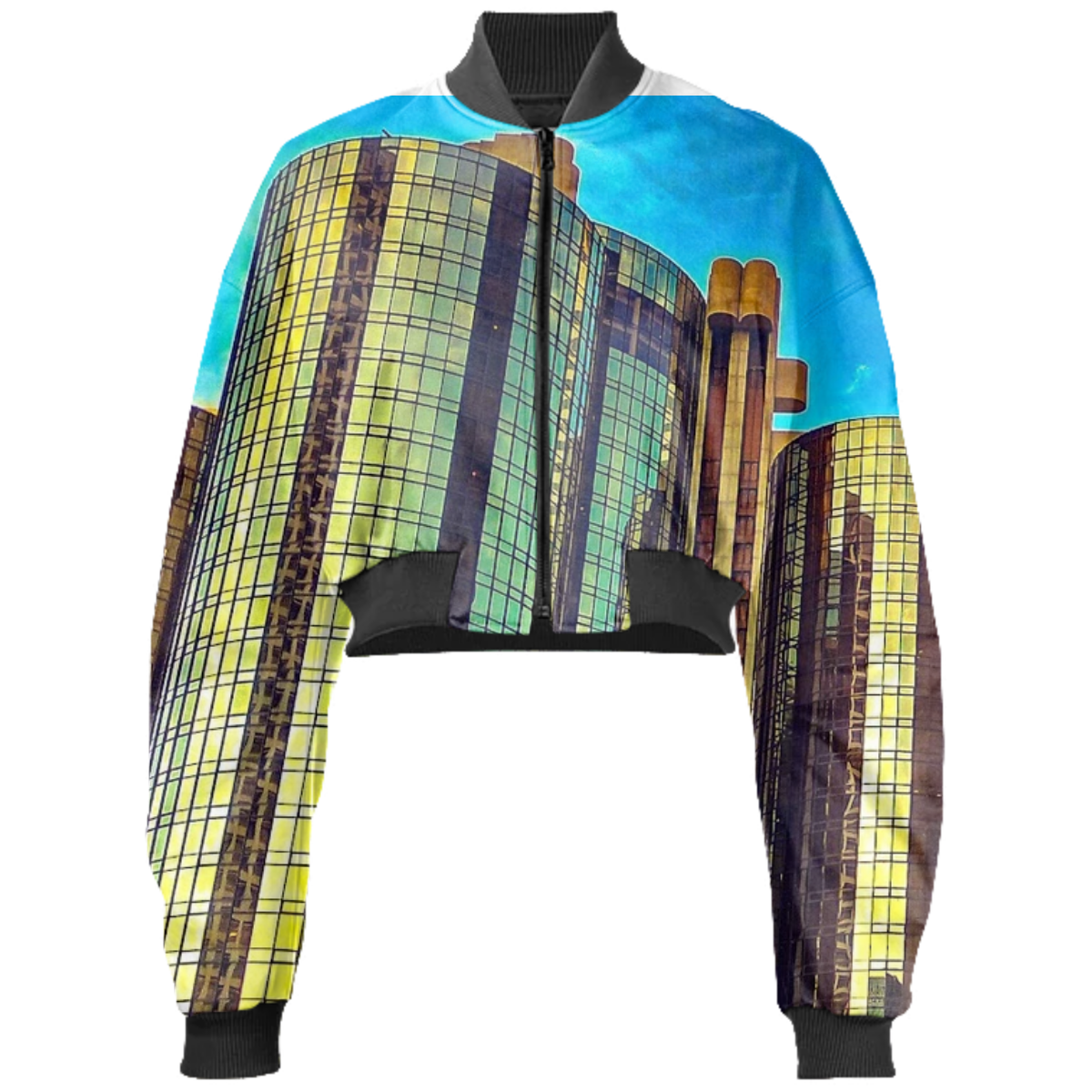 Designed by Gabriel Held this neoprene bomber jacket has a cropped fit with raglan sleeves a zip up front and two welt pockets. Matches with the Gabriel Held Mini Zip Skirt.