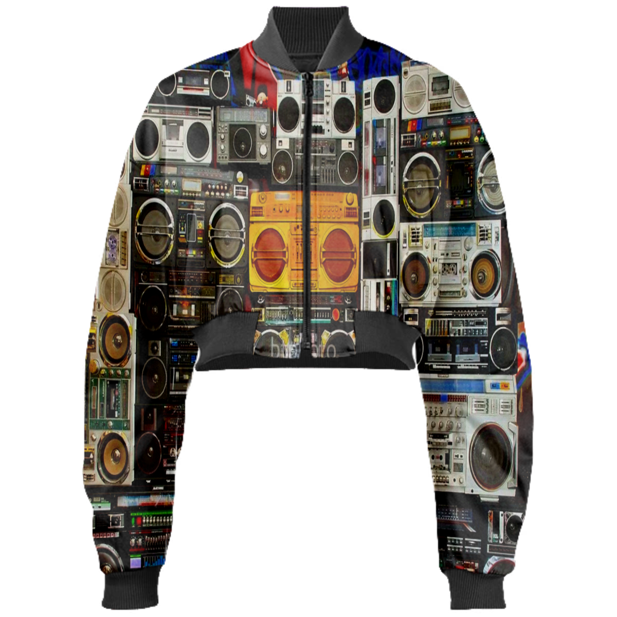 Designed by Gabriel Held this neoprene bomber jacket has a cropped fit with raglan sleeves a zip up front and two welt pockets. Matches with the Gabriel Held Mini Zip Skirt.