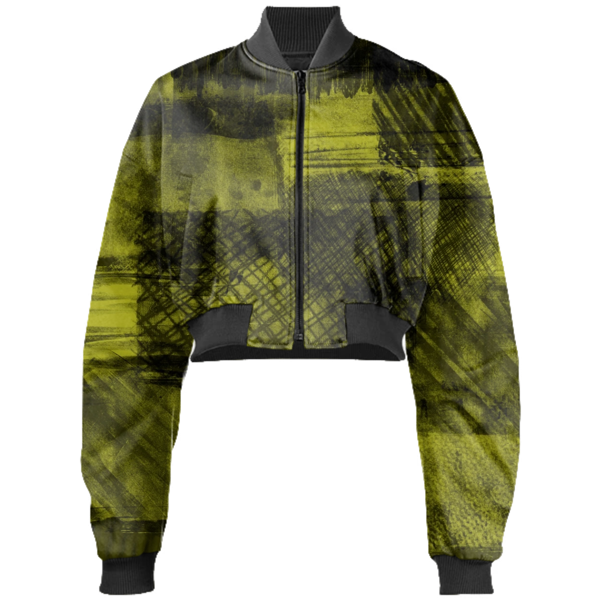 Designed by Gabriel Held this neoprene bomber jacket has a cropped fit with raglan sleeves a zip up front and two welt pockets. Matches with the Gabriel Held Mini Zip Skirt.