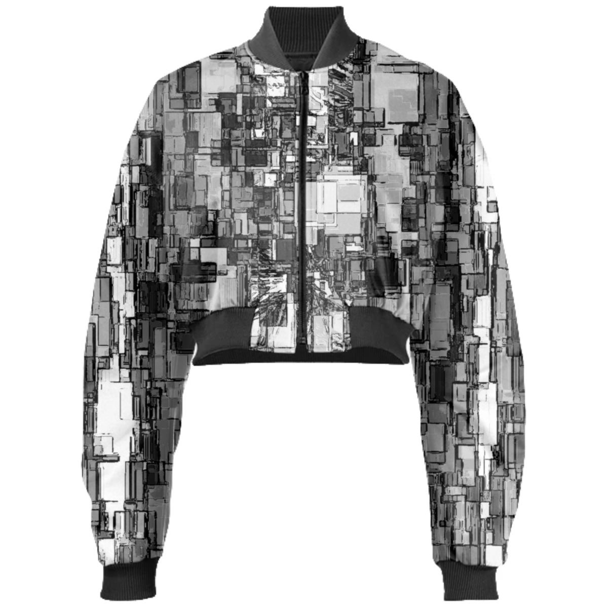 Designed by Gabriel Held this neoprene bomber jacket has a cropped fit with raglan sleeves a zip up front and two welt pockets. Matches with the Gabriel Held Mini Zip Skirt.