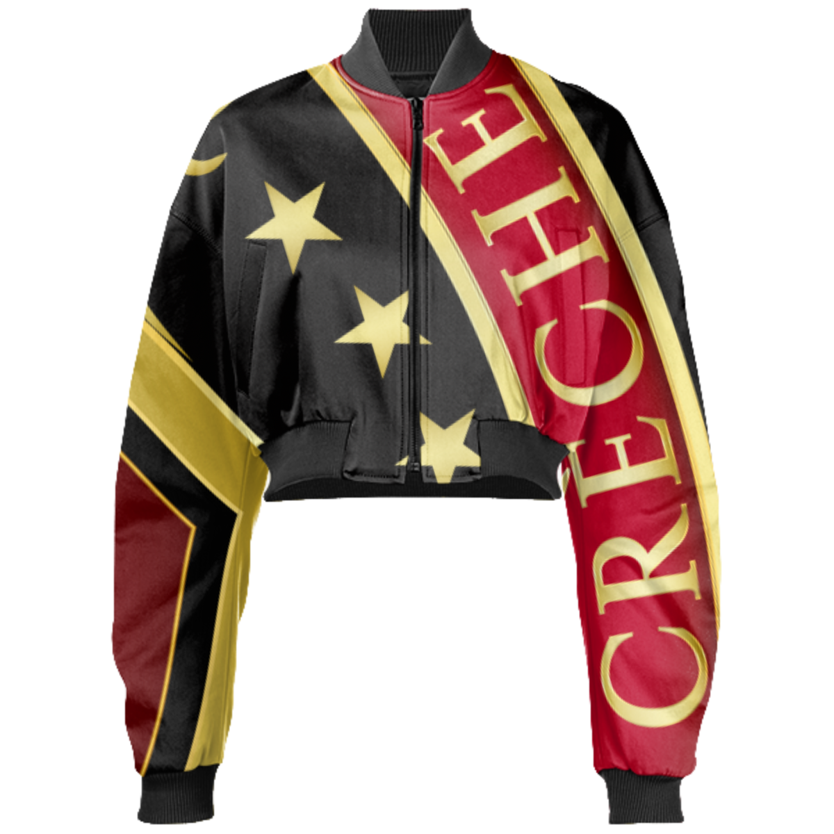 Designed by Gabriel Held this neoprene bomber jacket has a cropped fit with raglan sleeves a zip up front and two welt pockets. Matches with the Gabriel Held Mini Zip Skirt.