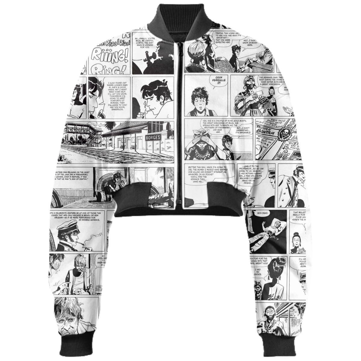 Designed by Gabriel Held this neoprene bomber jacket has a cropped fit with raglan sleeves a zip up front and two welt pockets. Matches with the Gabriel Held Mini Zip Skirt.