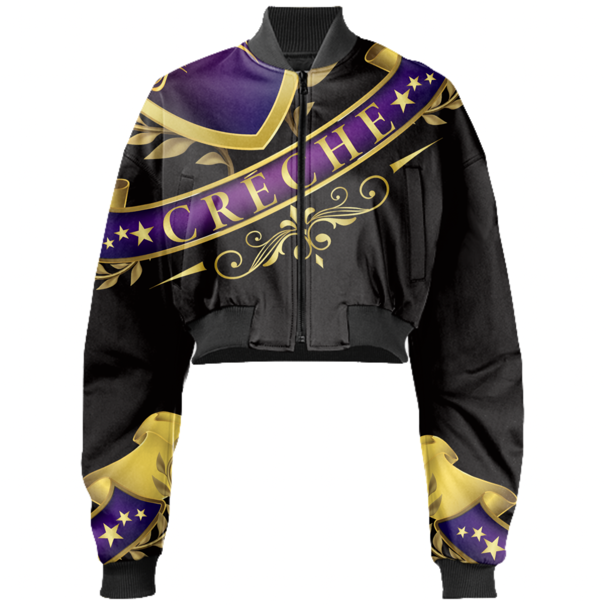 Designed by Gabriel Held this neoprene bomber jacket has a cropped fit with raglan sleeves a zip up front and two welt pockets. Matches with the Gabriel Held Mini Zip Skirt.