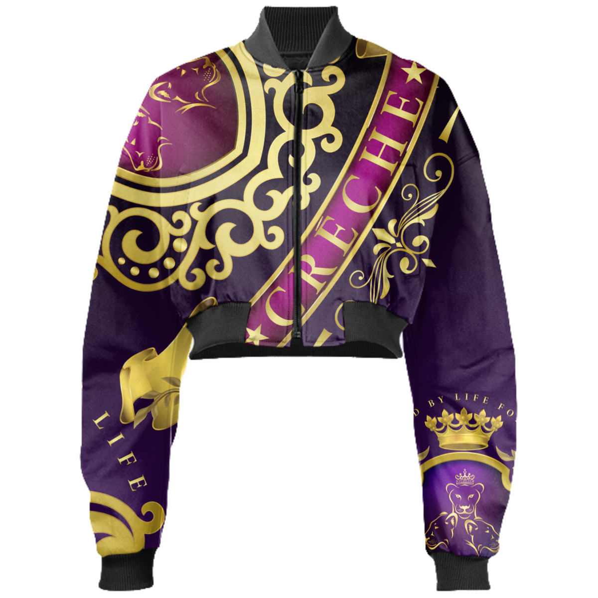 Designed by Gabriel Held this neoprene bomber jacket has a cropped fit with raglan sleeves a zip up front and two welt pockets. Matches with the Gabriel Held Mini Zip Skirt.