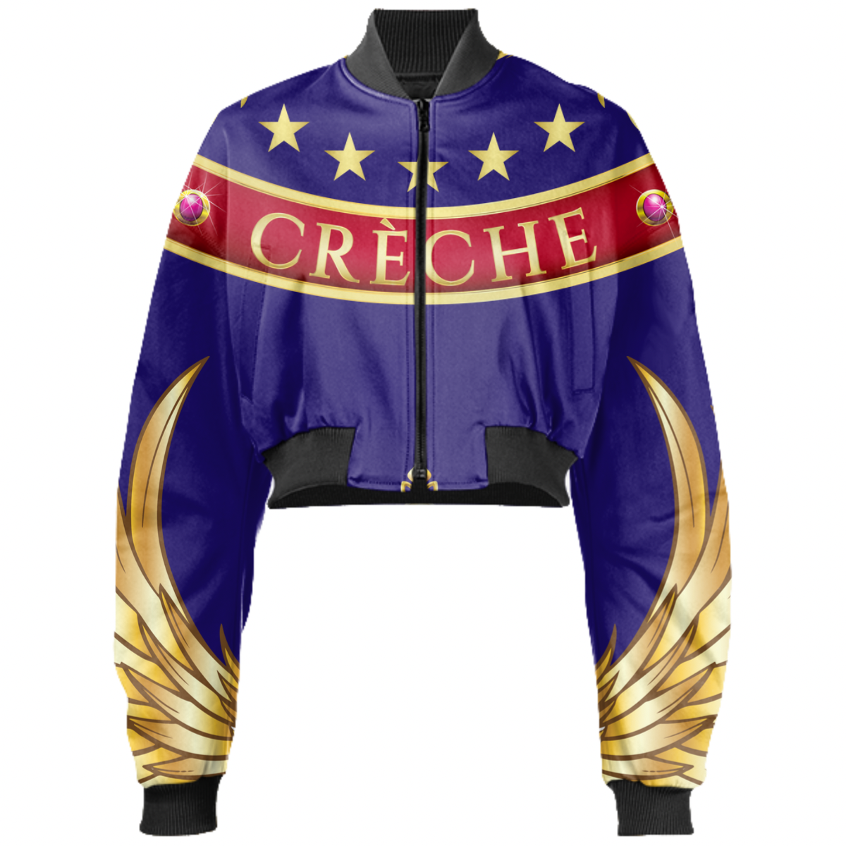 Designed by Gabriel Held this neoprene bomber jacket has a cropped fit with raglan sleeves a zip up front and two welt pockets. Matches with the Gabriel Held Mini Zip Skirt.