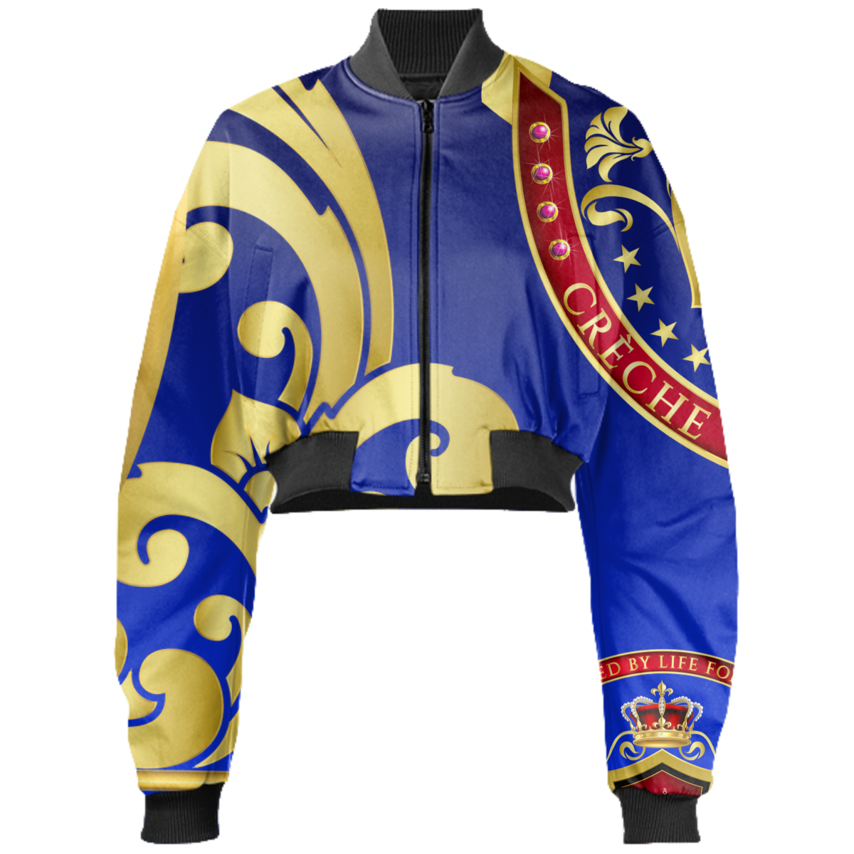 The uploaded file will be printed on the entire front and be mirrored on the back. Because of our cut and sew process some print elements on pockets seams and sleeves might not match up. For best results please upload a PNG or JPG with RGB color profile and dimensions of at least 35 inches width by 30 inches length. DPI can be as low as 72.