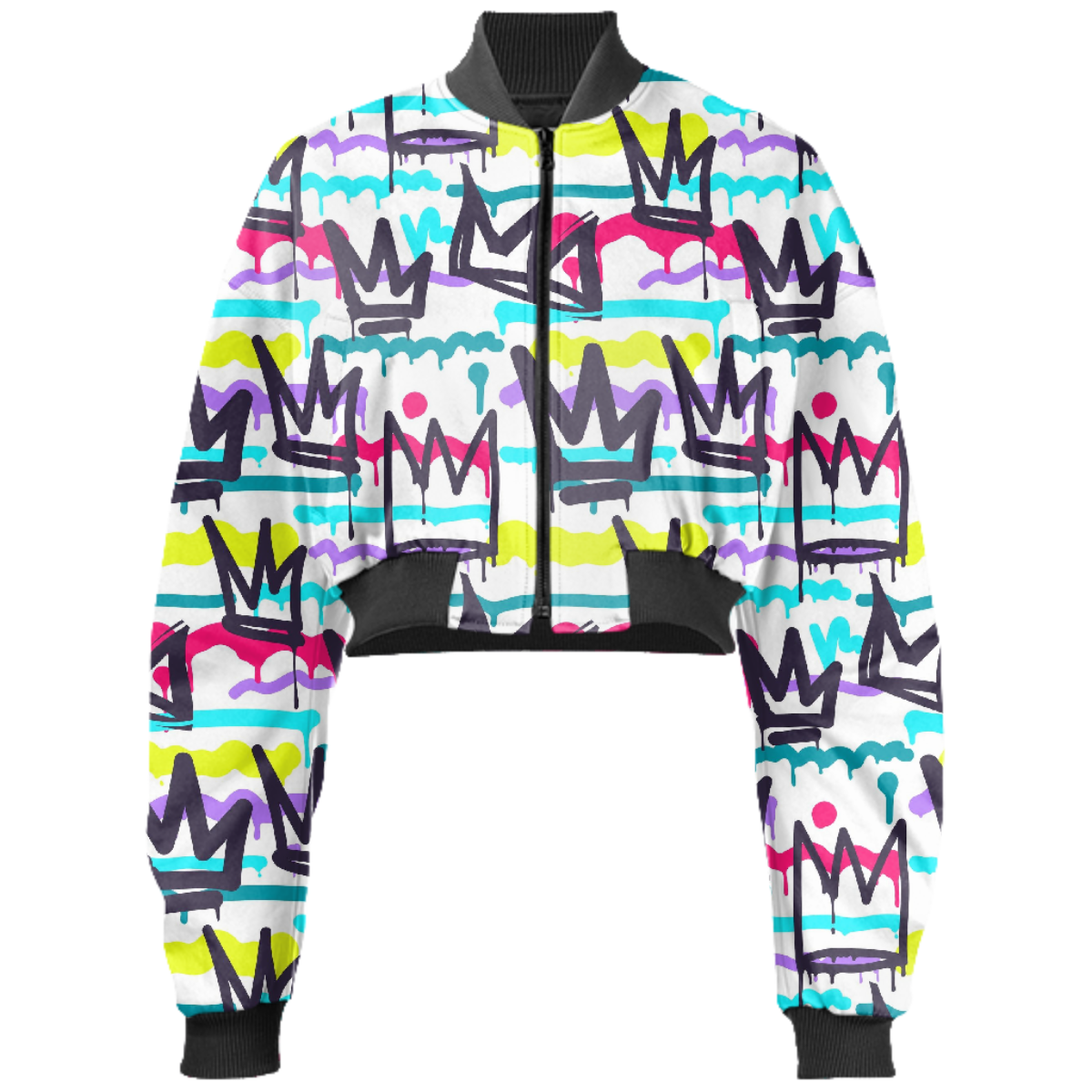 Designed by Gabriel Held this neoprene bomber jacket has a cropped fit with raglan sleeves a zip up front and two welt pockets. Matches with the Gabriel Held Mini Zip Skirt.